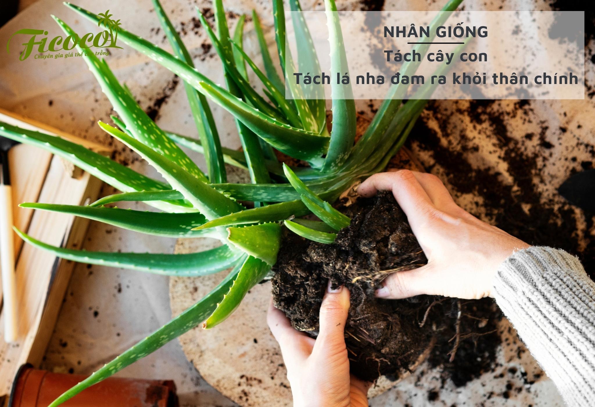 Nha đam được nhân giống bằng phương pháp vô tính. Chúng ta sử dụng lá nha đam để tiến hành nhân giống. Ðể tăng hệ số nhân giống, có thể cắt bỏ đọt cây mẹ. Một năm sau xung quanh cây mẹ sẽ xuất hiện hàng loạt các cây con. Khi cây con lớn chừng 10 cm, chúng ta tách cây con đem vào vườn ươm, chăm sóc cây lớn chừng 15 – 20 cm thì lấy đem trồng.